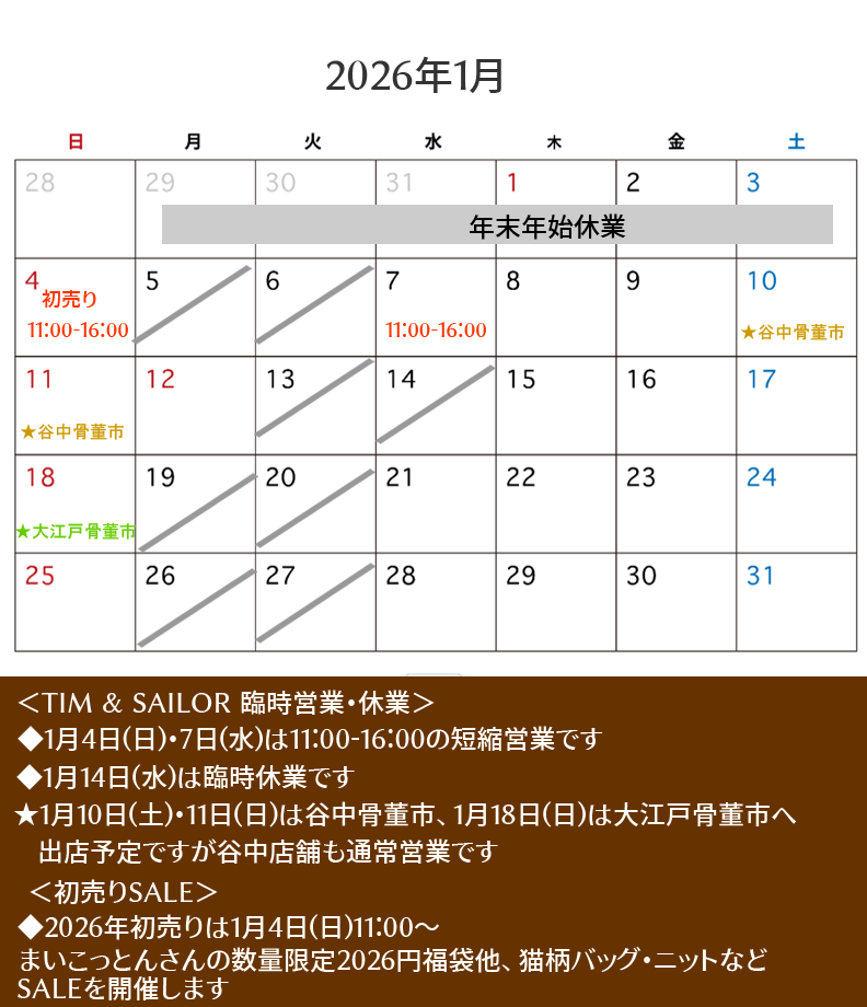 ※1月10日(土)・10日(日)は谷中骨董市、1月18日(日)は大江戸骨董市へ出店予定ですが、谷中店舗も通常営業予定です。